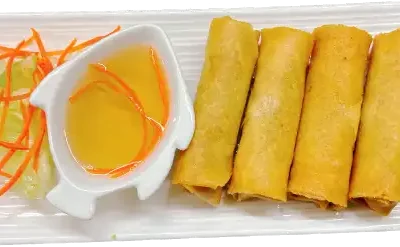Crispy golden fried imperial-roll with mung bean, carrot, taro root, onion, and cellophane noodle. Served with vinaigrette sauce.